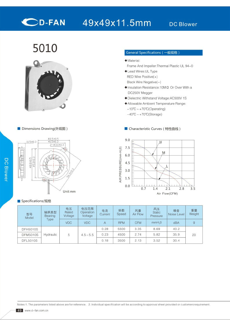 EPC风扇DBH5010S噪音与摩擦力、空气流动有关。风扇转速越高、风量越大,造成的噪音也会越大,另外EPC风扇自身的震动也是不可忽视的因素。当然EPC风扇的自身震动会很小,但前面两个者却是难以克服的。要解决这个问题,我们可以尝试使用尺寸较大的风扇。应在在风量相同的情况下,大EPC风扇在较低转速时的工作噪声要小于小风扇在高转速时的工作噪声。另外一个我们容易忽略的因素是风扇的轴承。由于风扇高速转动时转轴和轴承之间要摩擦碰撞,所以也是上海云博(中国)一站式服务平台噪声的一个主要来源. EPC风扇DBH5010S图示 EPC风扇DBH5010S参数
